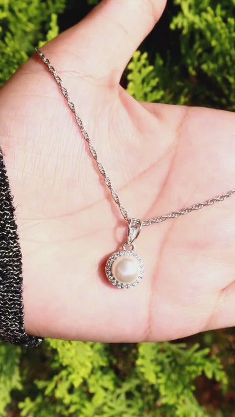 Adorn yourself with silver dreams. Let your inner radiance shine through our captivating 92.5 Sterling Silver Spiral Chain combined with Premium Round Zirconia and Freshwater Pearl Pendant.