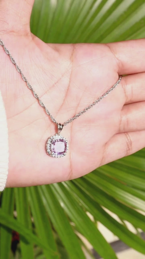 Shine bright like silver. Elevate your style with our stunning 925 Sterling Silver Spiral Chain with Single Halo Squircle Pink Zirconia Pendant.