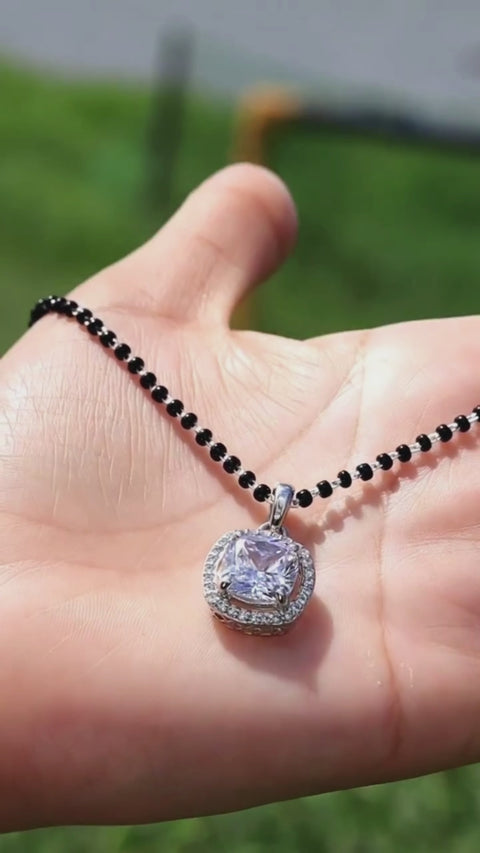 Shine bright like silver. Elevate your style with our stunning 925 Sterling Silver Mangalsutra with Single Halo Squircle Premium Zirconia Pendant.